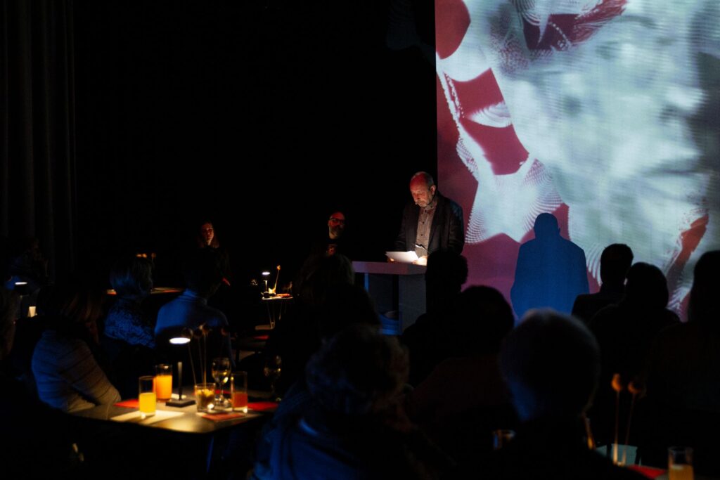 O njej pa je zbranemu občinstvu pripovedoval filozof, dr. Ernest Ženko, ki se med drugim ukvarja tudi z etiko umetne inteligence. »Srečko Kosovel je svoj Kons. 5 napisal pred sto in enim letom. Bi ga, če bi pisal danes, napisal s pomočjo umetne inteligence? Bi ‘Gnoj je zlato in zlato je gnoj’ lahko sestavil tudi stroj?« se je uvodoma vprašal.
